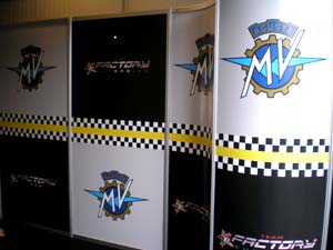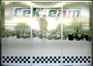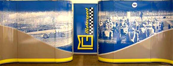 Pannelli pubblicitari per utilizzo in strutture box di team di auto e moto, realizzati con applicazione di vinile adesivo, adesivi prespaziati o grafica digitale in stampa diretta |